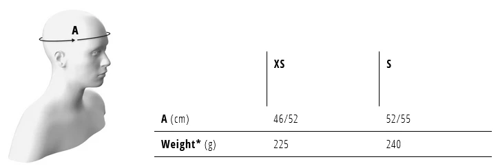 Waga: ok. 225 g (XS), ok. 240 g (S)