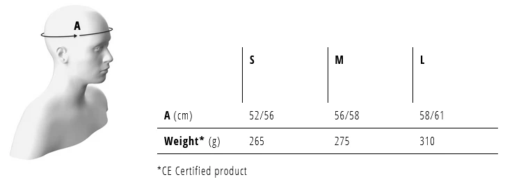 • System dopasowania: Safe-T Upsilon z regulowaną pętlą wokół głowy (360°) i regulacją pionową